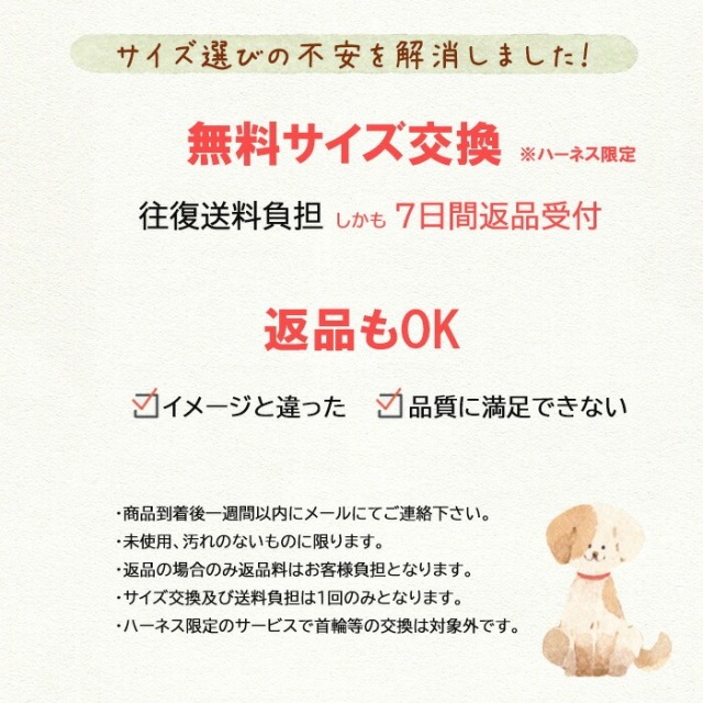 犬首輪とリードの通販専門店 犬の首輪屋てるべる HOME ハーネス&おそろいリード ワンダーフィット 抜けにくくて着脱がしやすいハーネス サイズ交換無料 ハーネスが苦手な子もワンタッチで取付簡単な安心安全ハーネス サイズ交換無料 価格: ¥3,650 (税込) 販売期間: 裏地カラーの新旧混在発送について: 選択してください 確認致しました。 サイズ選びに迷われた場合は、大きめサイズをお薦めします。: 選択してください 確認致しました。 万一の事故防止の為目の届く範囲でお使い下さい。: 選択してください 確認致しました。 数量: 個 カラーサイズ在庫購入レッド15mm幅XXS○ 15mm幅XS○ 15mm幅S○ 20mm幅M○ 20mm幅L○ 20mm幅LL○ 25mm幅XL○ 25mm幅XXL× ペールピンク15mm幅XXS○ 15mm幅XS○ 15mm幅S○ 20mm幅M○ 20mm幅L○ 20mm幅LL○ 25mm幅XL○ 25mm幅XXL○ ローズピンク15mm幅XXS○ 15mm幅XS○ 15mm幅S○ 20mm幅M○ 20mm幅L○ 20mm幅LL○ 25mm幅XL○ 25mm幅XXL○ パープル15mm幅XXS○ 15mm幅XS○ 15mm幅S○ 20mm幅M○ 20mm幅L○ 20mm幅LL○ 25mm幅XL○ 25mm幅XXL○ カナリーイエロー15mm幅XXS○ 15mm幅XS○ 15mm幅S○ 20mm幅M○ 20mm幅L○ 20mm幅LL○ 25mm幅XL○ 25mm幅XXL○ キャロットオレンジ15mm幅XXS○ 15mm幅XS○ 15mm幅S○ 20mm幅M○ 20mm幅L○ 20mm幅LL○ 25mm幅XL○ 25mm幅XXL× ターコイズ15mm幅XXS○ 15mm幅XS○ 15mm幅S○ 20mm幅M○ 20mm幅L○ 20mm幅LL○ 25mm幅XL○ 25mm幅XXL○ ターコイズピンク15mm幅XXS○ 15mm幅XS× 15mm幅S○ 20mm幅M○ 20mm幅L○ 20mm幅LL○ 25mm幅XL○ 25mm幅XXL○ スカイブルー15mm幅XXS○ 15mm幅XS○ 15mm幅S○ 20mm幅M○ 20mm幅L○ 20mm幅LL○ 25mm幅XL○ 25mm幅XXL○ レイクブルー15mm幅XXS○ 15mm幅XS○ 15mm幅S○ 20mm幅M○ 20mm幅L○ 20mm幅LL○ 25mm幅XL○ 25mm幅XXL○ カーキ15mm幅XXS○ 15mm幅XS○ 15mm幅S○ 20mm幅M○ 20mm幅L○ 20mm幅LL○ 25mm幅XL○ 25mm幅XXL○ ココナッツブラウン15mm幅XXS○ 15mm幅XS○ 15mm幅S○ 20mm幅M○ 20mm幅L○ 20mm幅LL○ 25mm幅XL○ 25mm幅XXL△ クールグレイ15mm幅XXS○ 15mm幅XS○ 15mm幅S○ 20mm幅M○ 20mm幅L○ 20mm幅LL○ 25mm幅XL○ 25mm幅XXL△ ブラック15mm幅XXS○ 15mm幅XS○ 15mm幅S○ 20mm幅M○ 20mm幅L○ 20mm幅LL○ 25mm幅XL○ 25mm幅XXL○ カラーサイズ在庫購入レッド15mm幅XXS○ 15mm幅XS○ 15mm幅S○ 20mm幅M○ 20mm幅L○ 20mm幅LL○ 25mm幅XL○ 25mm幅XXL× ペールピンク15mm幅XXS○ 15mm幅XS○ 15mm幅S○ 20mm幅M○ 20mm幅L○ 20mm幅LL○ 25mm幅XL○ 25mm幅XXL○ ローズピンク15mm幅XXS○ 15mm幅XS○ 15mm幅S○ 20mm幅M○ 20mm幅L○ 20mm幅LL○ 25mm幅XL○ 25mm幅XXL○ パープル15mm幅XXS○ 15mm幅XS○ 15mm幅S○ 20mm幅M○ 20mm幅L○ 20mm幅LL○ 25mm幅XL○ 25mm幅XXL○ カナリーイエロー15mm幅XXS○ 15mm幅XS○ 15mm幅S○ 20mm幅M○ 20mm幅L○ 20mm幅LL○ 25mm幅XL○ 25mm幅XXL○ キャロットオレンジ15mm幅XXS○ 15mm幅XS○ 15mm幅S○ 20mm幅M○ 20mm幅L○ 20mm幅LL○ 25mm幅XL○ 25mm幅XXL× ターコイズ15mm幅XXS○ 15mm幅XS○ 15mm幅S○ 20mm幅M○ 20mm幅L○ 20mm幅LL○ 25mm幅XL○ 25mm幅XXL○ ターコイズピンク15mm幅XXS○ 15mm幅XS× 15mm幅S○ 20mm幅M○ 20mm幅L○ 20mm幅LL○ 25mm幅XL○ 25mm幅XXL○ スカイブルー15mm幅XXS○ 15mm幅XS○ 15mm幅S○ 20mm幅M○ 20mm幅L○ 20mm幅LL○ 25mm幅XL○ 25mm幅XXL○ レイクブルー15mm幅XXS○ 15mm幅XS○ 15mm幅S○ 20mm幅M○ 20mm幅L○ 20mm幅LL○ 25mm幅XL○ 25mm幅XXL○ カーキ15mm幅XXS○ 15mm幅XS○ 15mm幅S○ 20mm幅M○ 20mm幅L○ 20mm幅LL○ 25mm幅XL○ 25mm幅XXL○ ココナッツブラウン15mm幅XXS○ 15mm幅XS○ 15mm幅S○ 20mm幅M○ 20mm幅L○ 20mm幅LL○ 25mm幅XL○ 25mm幅XXL△ クールグレイ15mm幅XXS○ 15mm幅XS○ 15mm幅S○ 20mm幅M○ 20mm幅L○ 20mm幅LL○ 25mm幅XL○ 25mm幅XXL△ ブラック15mm幅XXS○ 15mm幅XS○ 15mm幅S○ 20mm幅M○ 20mm幅L○ 20mm幅LL○ 25mm幅XL○ 25mm幅XXL○ 返品についての詳細はこちら