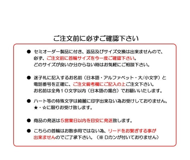 犬首輪とリードの通販専門店 犬の首輪屋てるべる HOME 迷子札付き首輪・迷子札チョーカー 犬 猫 首輪 迷子札チョーカー おしゃれ かわいい 犬首輪 猫首輪 パピー用首輪 名前入り 名入れ ネーム入り ネームタグ 名札 ドッグタグ 超軽量 迷子札 超小型犬用首輪 いぬ ネコ 子犬 ブランド デニム 補助首輪 チョーカー maigo-dm 価格: ¥3,380 (税込) 販売期間: バックル&Dカンのカラー: 選択してください ゴールド シルバー ★サイズお選びください★: 選択してください 15cm~21cm 17cm~23cm 19cm~25cm 21cm~27cm 23cm~29cm 25cm~31cm 27cm~33cm 29cm~35cm 31cm~37cm それ以上はご相談ください ▼迷子札のお名前(全角8文字以内)上段▼: ▼迷子札のお電話番号(11桁程度)下段▼: 数量: 個 カラー在庫購入インディゴブルー(暗いブルー)○ ライトブルー(明るいブルー)○ ブラック○ デニムベージュ○ カラー在庫購入インディゴブルー(暗いブルー)○ ライトブルー(明るいブルー)○ ブラック○ デニムベージュ○ 返品についての詳細はこちら