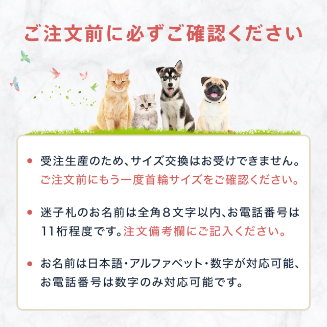 犬首輪とリードの通販専門店 犬の首輪屋てるべる HOME ねこ首輪 猫 首輪 猫首輪 迷子札 セーフティ バックル 鈴 安全 おしゃれ かわいい かっこいい 超軽量 名入れ 名前入 ネームタグ 迷子札付猫首輪 ねこ ネコ 猫用首輪 くびわ 軽い 革 皮 レザー デニム 鈴付き 送料無料 犬の首輪屋てるべる neko-dm 価格: ¥3,380 (税込) 販売期間: ★サイズお選びください★: 選択してください 15-20cm 17-22cm 19-24cm 21-26cm 23-28cm 25-30cm 27-32cm ご希望の方には鈴をサービス♪: 選択してください 鈴はいりません 鈴をつけます 迷子札に記載するお名前: 迷子札に記載する電話番号: 数量: 個 カラー在庫購入インディゴブルー(暗いブルー)○ ライトブルー(明るいブルー)○ ブラック○ デニムベージュ○ カラー在庫購入インディゴブルー(暗いブルー)○ ライトブルー(明るいブルー)○ ブラック○ デニムベージュ○ 返品についての詳細はこちら レビューはありません >> ねこ首輪にセーフティバックルが必要な理由はこちら