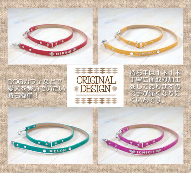 Le-9 本革製イニシャル名入リード(小・中型犬用リード)