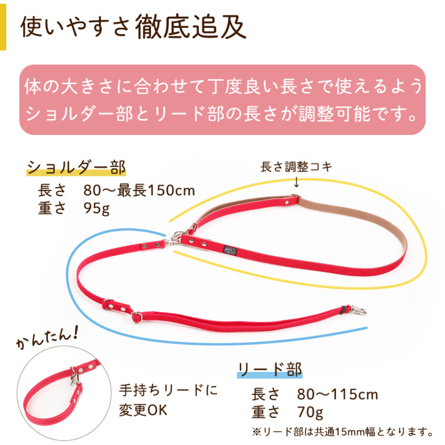 ワンダーフィット 一度使うとやめられない快適さ。両手が空くから楽らくお散歩が出来るショルダーリード ハンズフリーリード