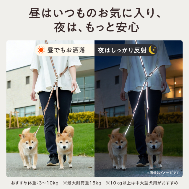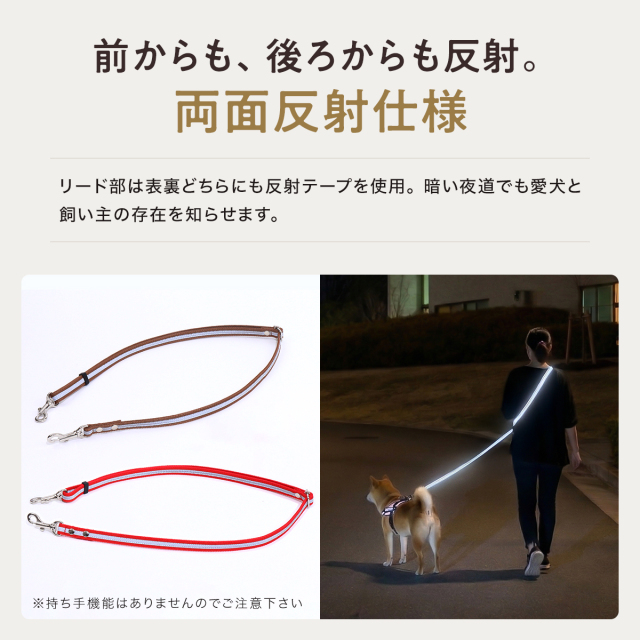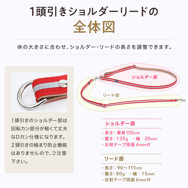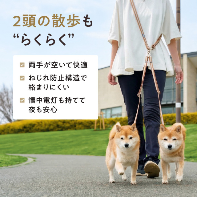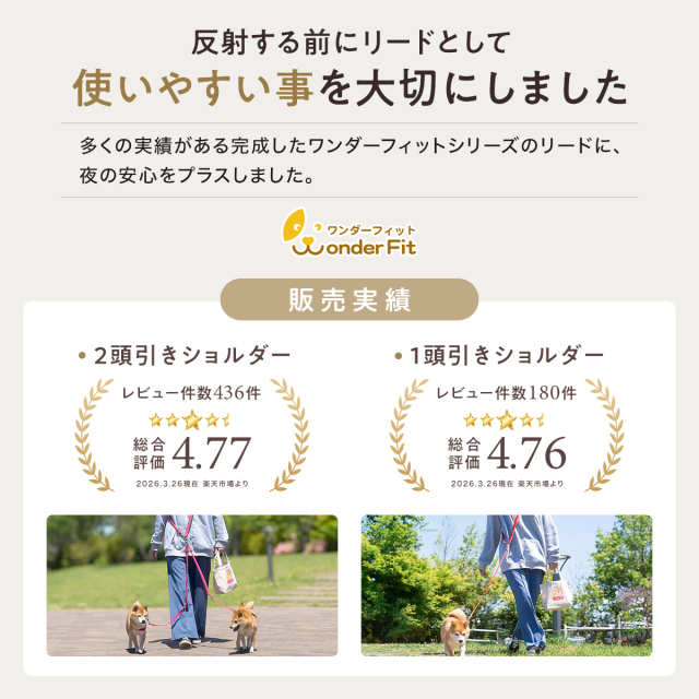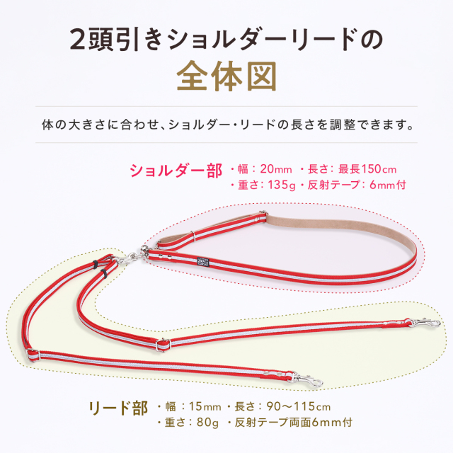 ワンダーフィット ショルダーリード 2頭引き 1頭引き 反射 光る 夜間 夜道 目立つ 散歩 安全 絡まない たすき掛け 中型犬 小型犬 肩掛け 多頭飼い 夏 軽い 日本製 犬の首輪屋てるべる