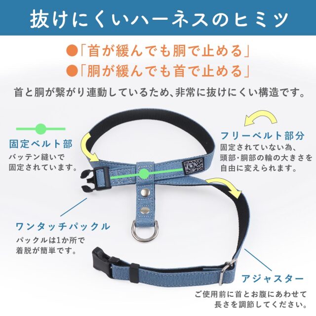 ワンダーフィット 抜けにくくて着脱がしやすいハーネス サイズ交換無料 ハーネスが苦手な子もワンタッチで取付簡単な安心安全ハーネス サイズ交換無料