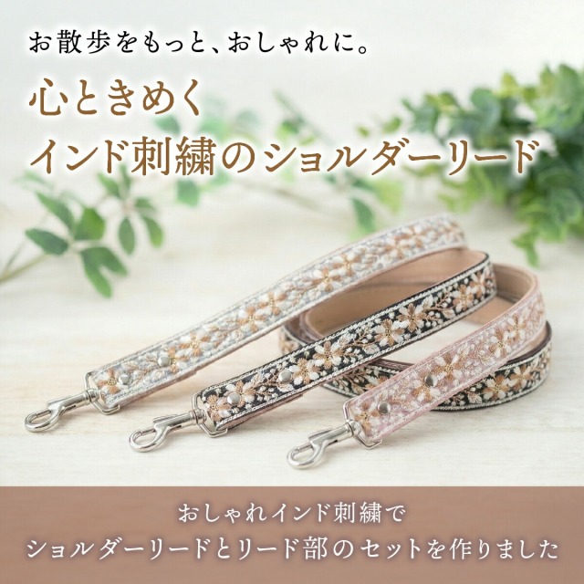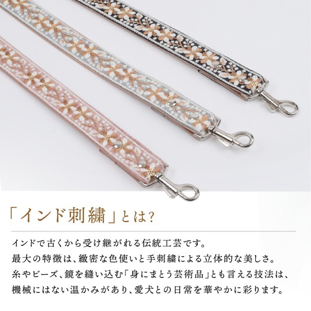 ワンダーフィット 犬 リード 1頭引き ショルダーリード インド刺繍 アンティーク調 アンティーク柄ハンズフリーリード ナスカン 絡まない 持ち手 痛くない 肩掛け たすき掛け 多機能 犬用リード 小型犬 中型犬 ハンズフリー ショルダー 肩かけ 外れ防止 日本製