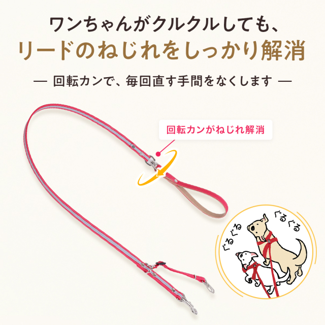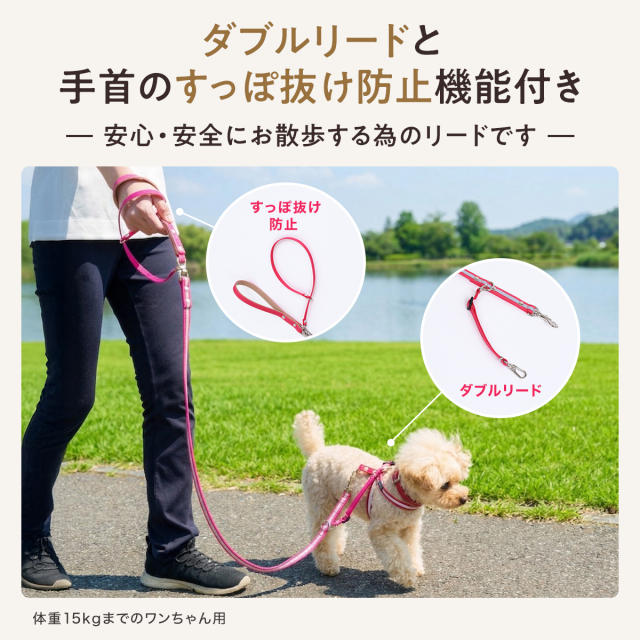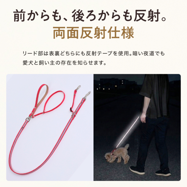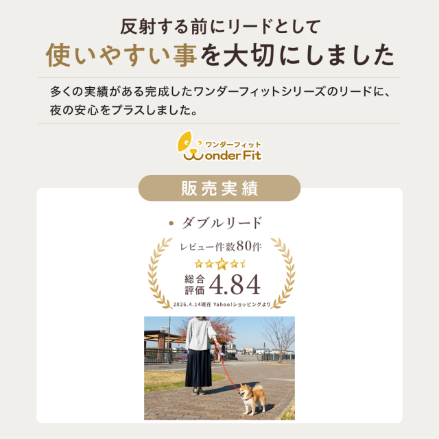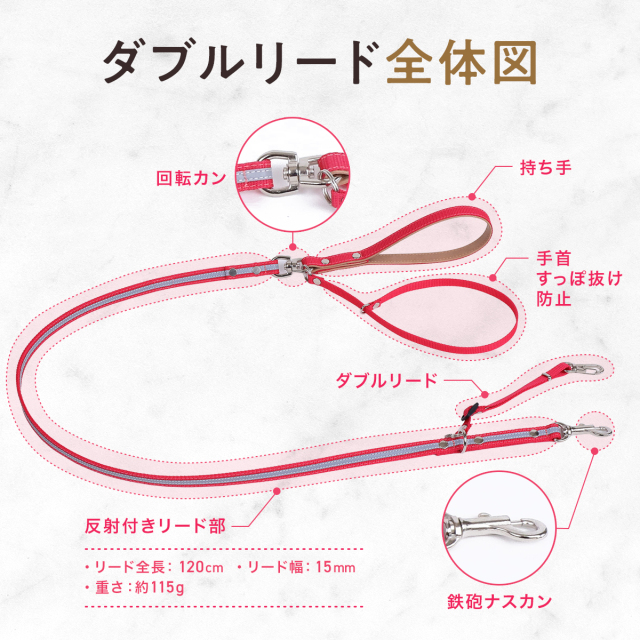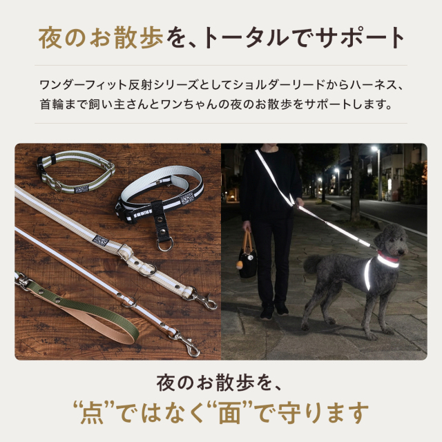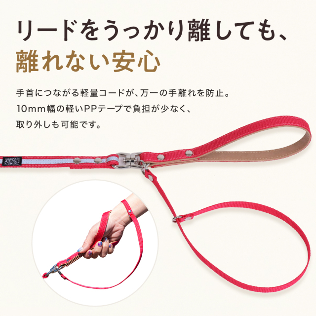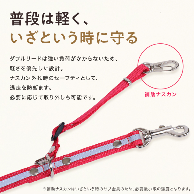 ワンダーフィット 光る リード 犬 反射 すっぽ抜け防止 ダブルリード 夜間 夜道 目立つ 散歩 安全 かわいい おしゃれ 小型犬用 中型犬用 外れ 防止 外れ防止 犬リード 絡まない 外れない リード用ストラップ 二重リード 手持ち